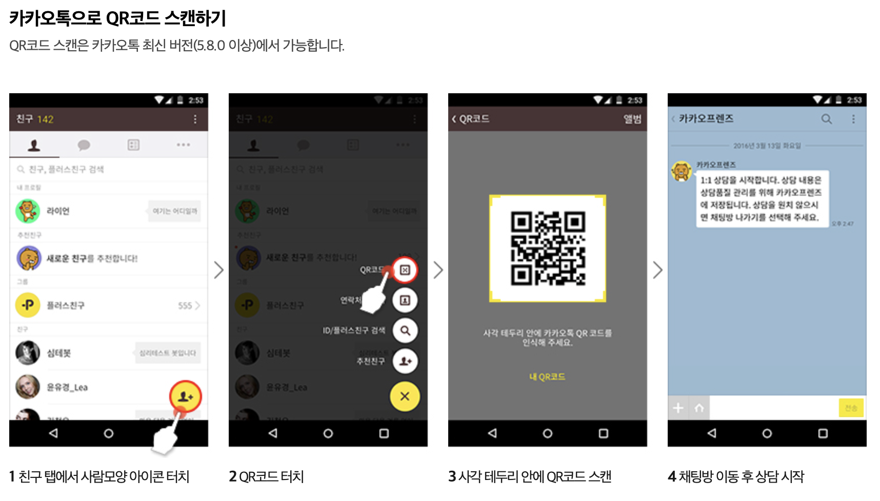 친구 추가를 위한 QR코드 스캔하기